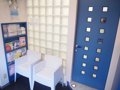 白と青を基調とした爽やかな雰囲気です。歯科医院に対して苦手意識を持っている人でも、リラックスして過ごせるような雰囲気作りを心がけています。