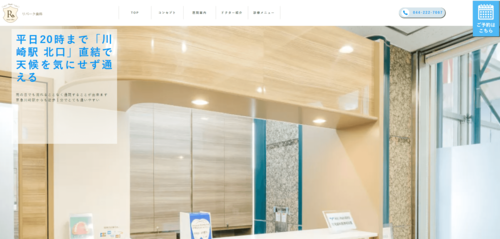 - JR川崎駅から徒歩5分に立地。土曜診療も行っているので、平日は多忙なビジネスパーソンでも無理なく通えます。